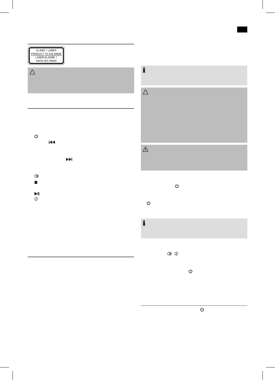 • Um das Gerät wieder auszuschalten, halten Sie die