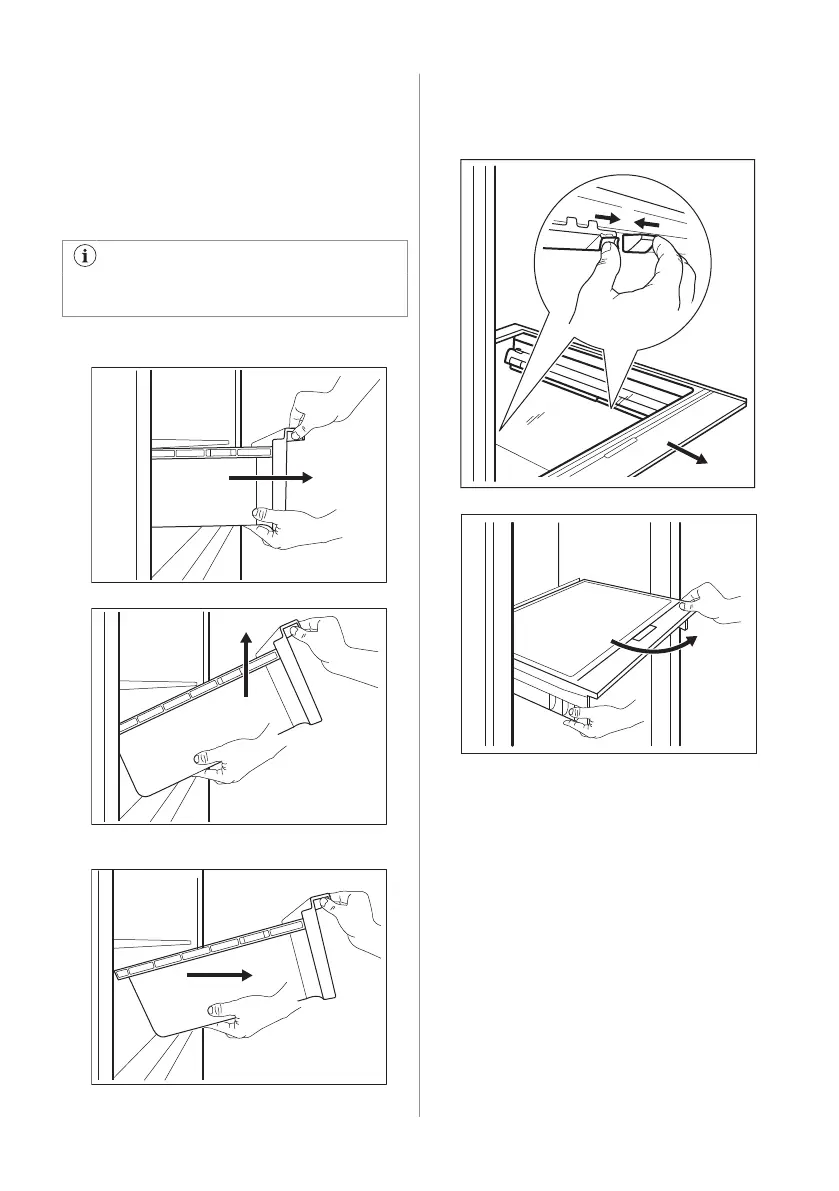 2. Dragðu glerhillustoðirnar í átt að þér.