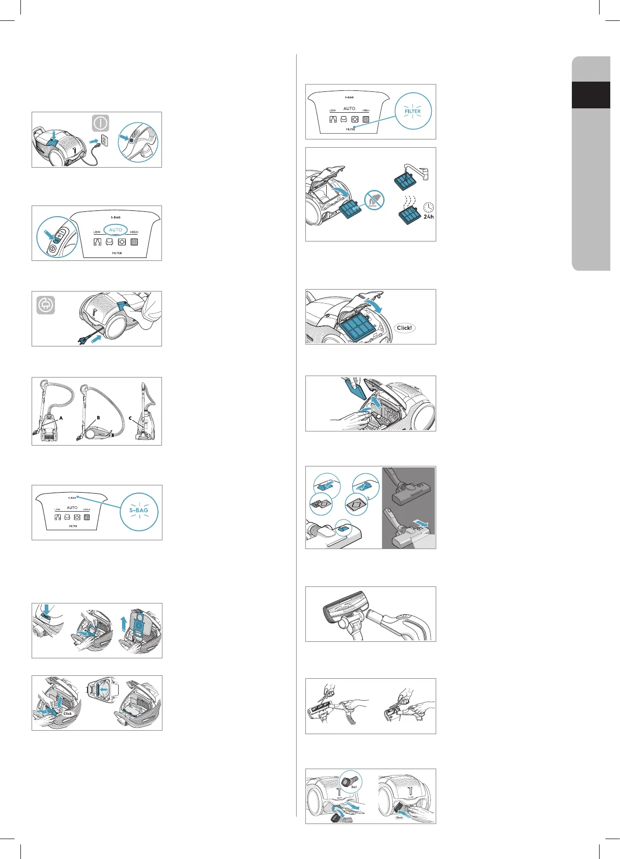 Remarque : lorsque vous démarrez l’aspirateur après remplacement du s-bag, 10 secondes