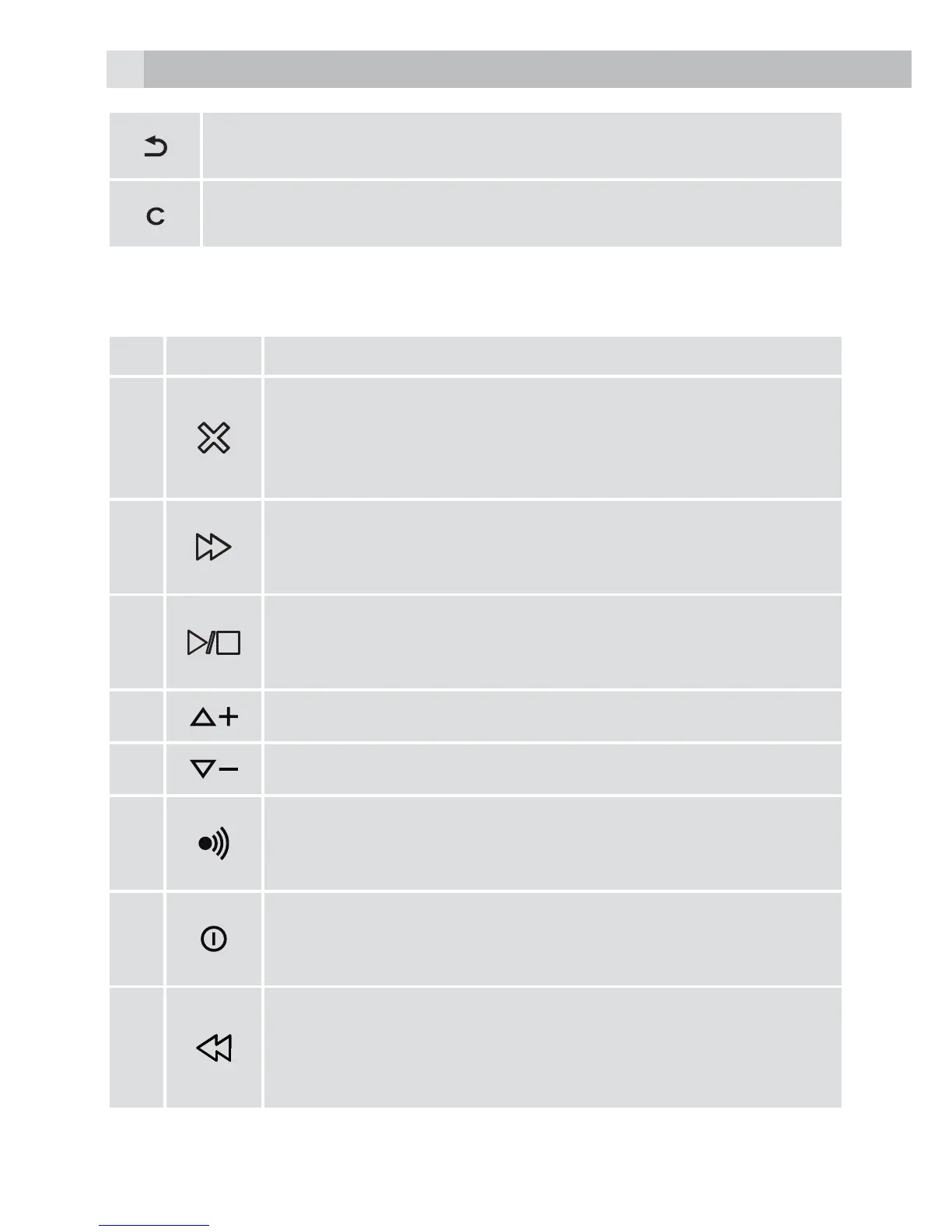 Press to decrease the playback volume.