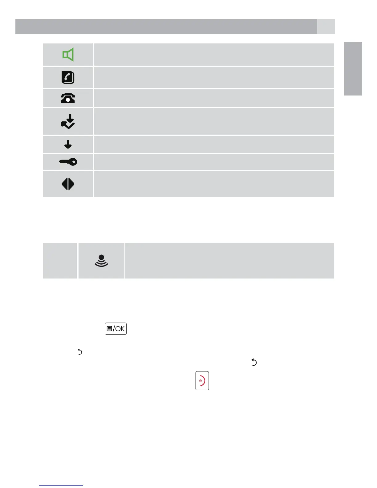 If no button is pressed for 20 seconds, the handset returns to standby
