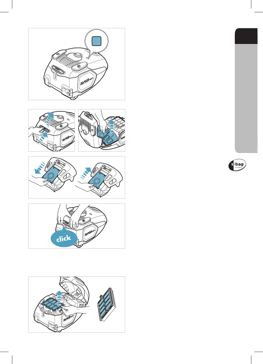 s-bag®-Staubbeutels wechseln/reinigen. Nur