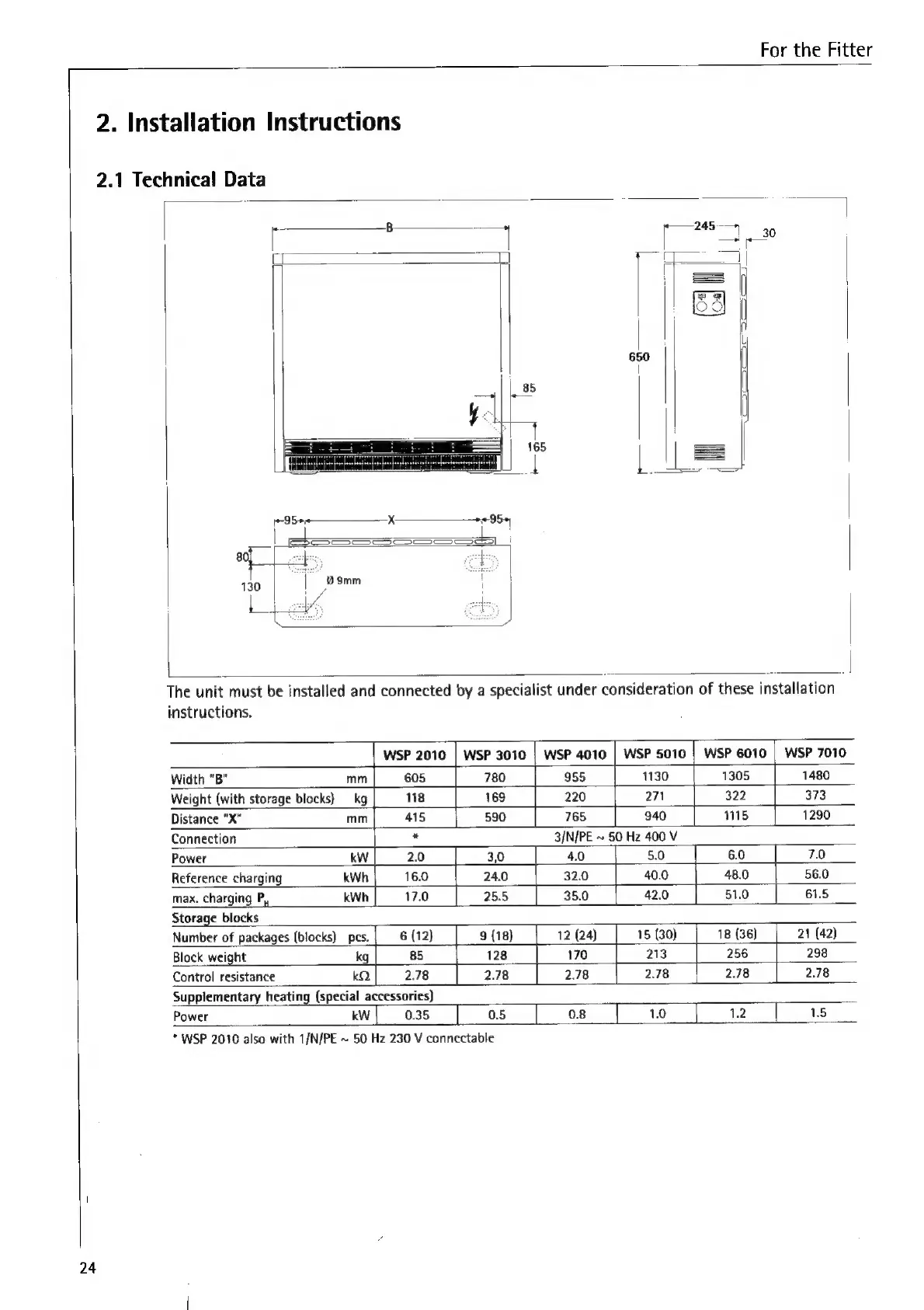 AEG WSP 6010 - Installation Instructions; Technical Data