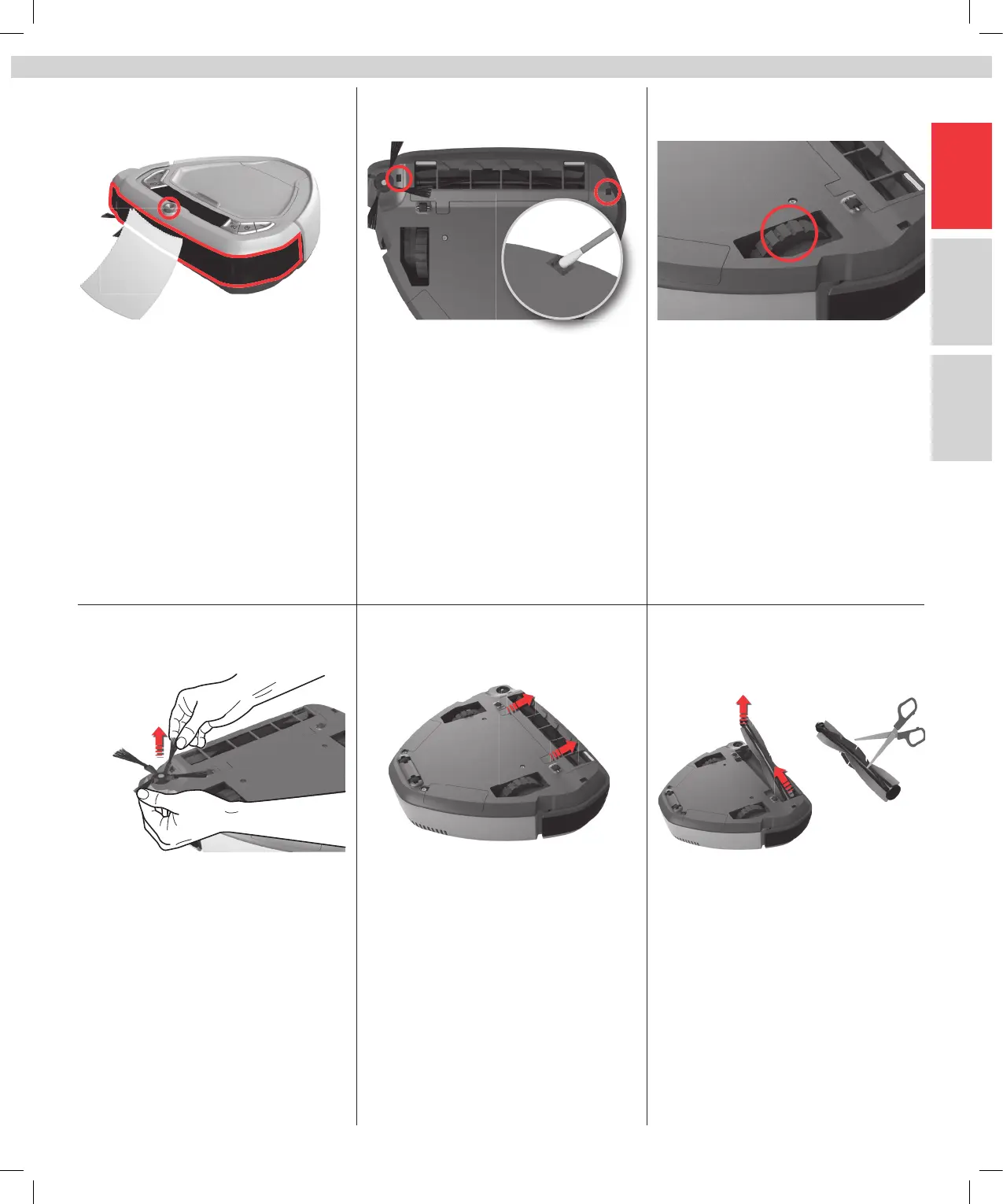Cleaning the sensors, Wheels, Brush roll and Side brush / Nettoyage des capteurs, des roulettes, du rouleau brosse et de la brosse latérale
