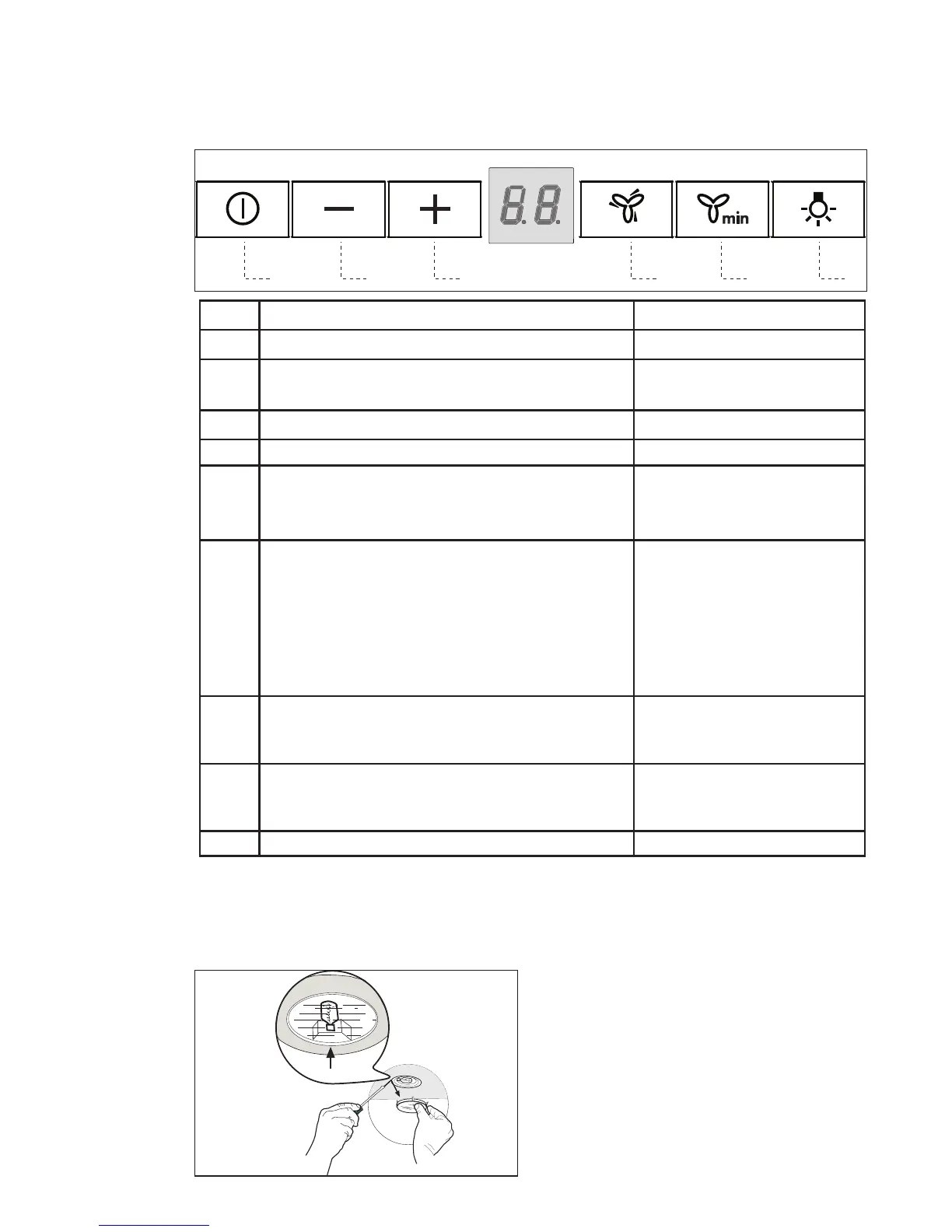 Tænder og slukker udsugningsmotoren ved den første hastighed. Viser den indstillede hastighed.