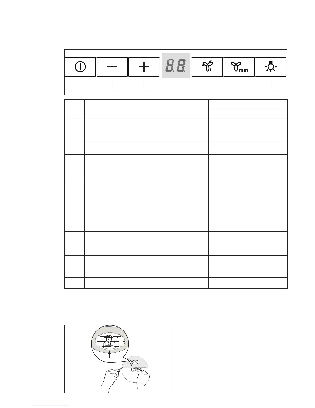 Első sebességfokozaton be- és kikapcsol az elszívómotor. Mutatja a beállított sebességet