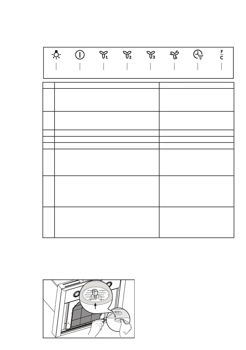 Hvis der trykkes på den i 5 sekunder med slukket emhætte
