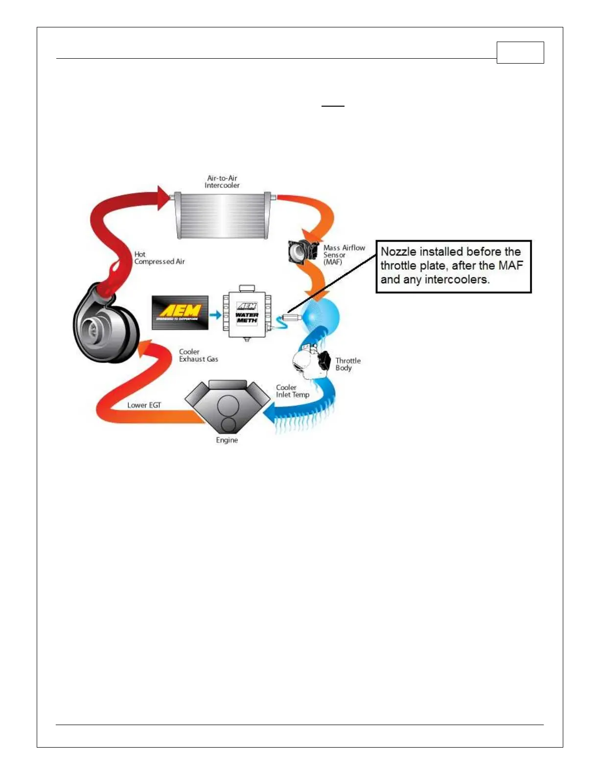 be mounted after the MAF sensor, if present. Nozzle must also be mounted after any intercoolers. In most