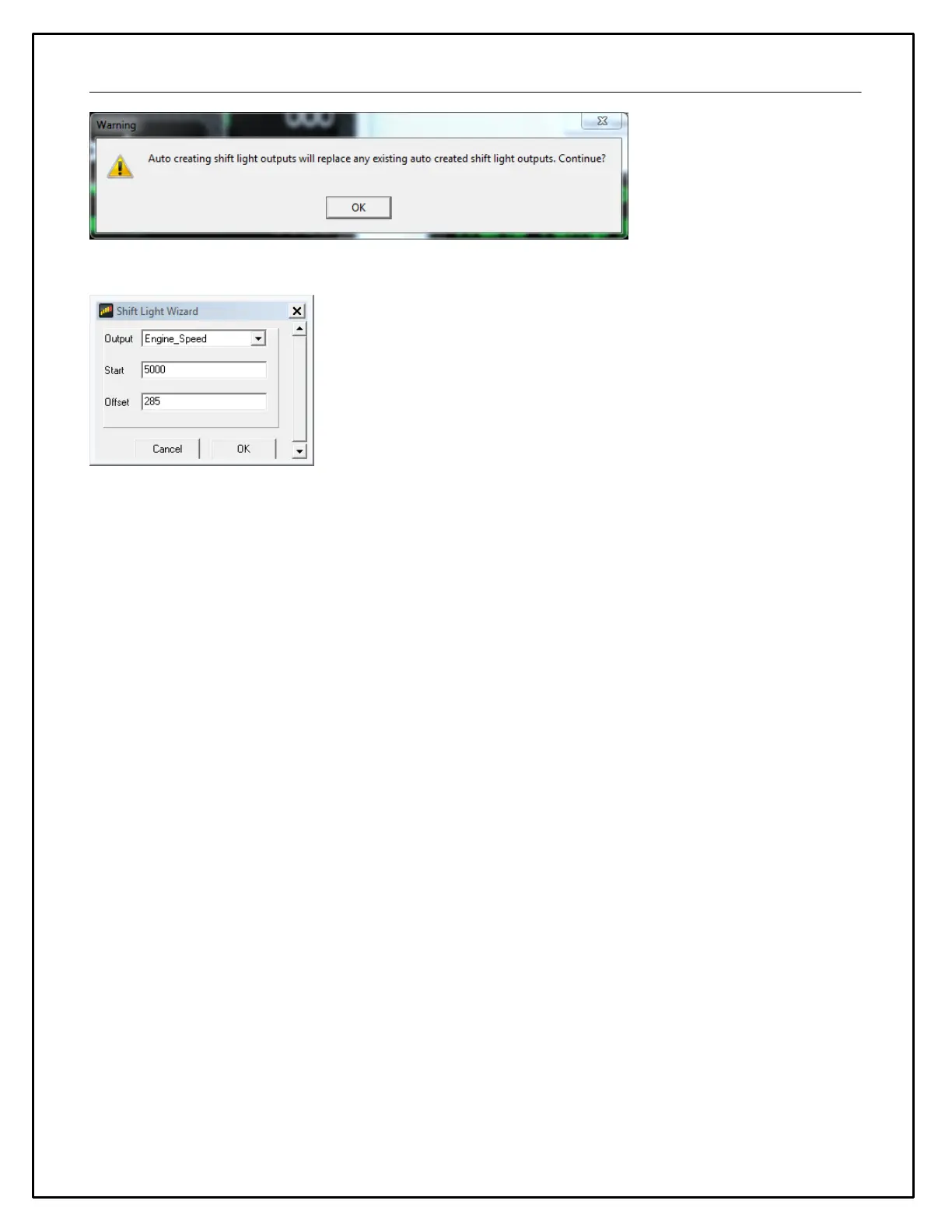 For example if you want to start at 5000 RPM and end at 7000 RPM: