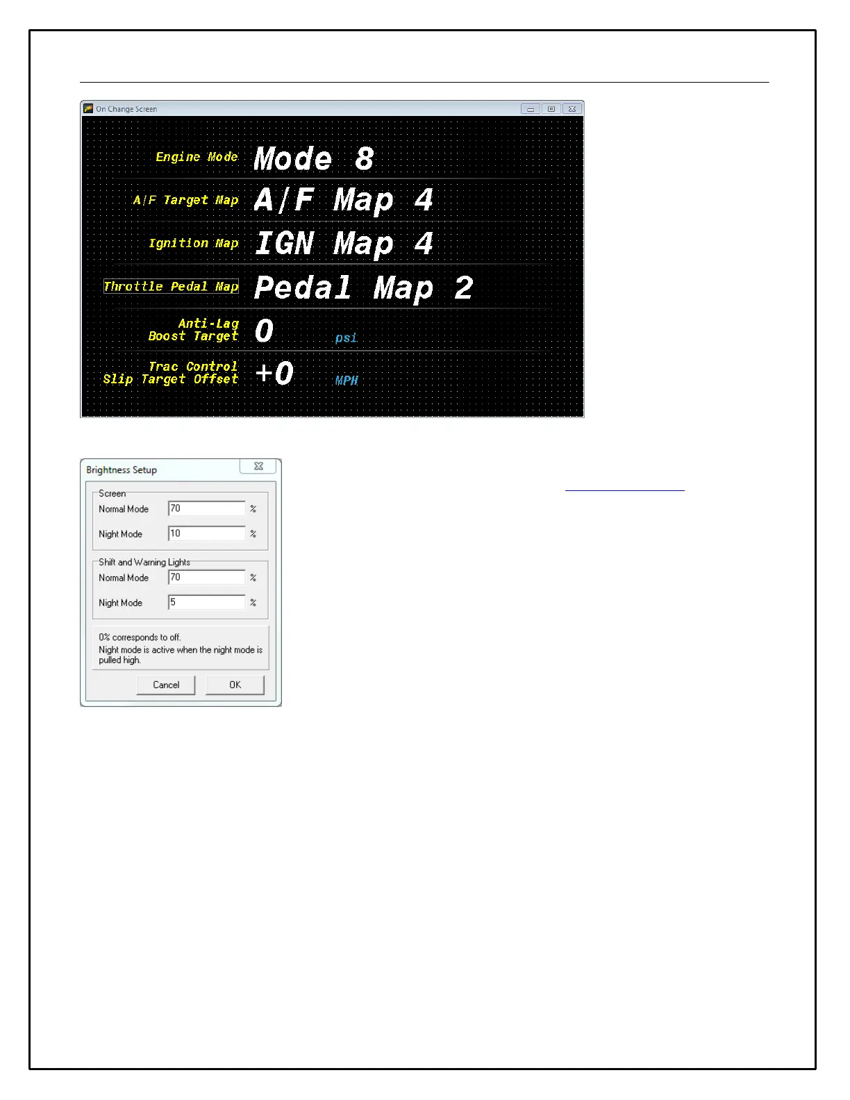 The Brightness setup dialog allows you to choose two different brightness