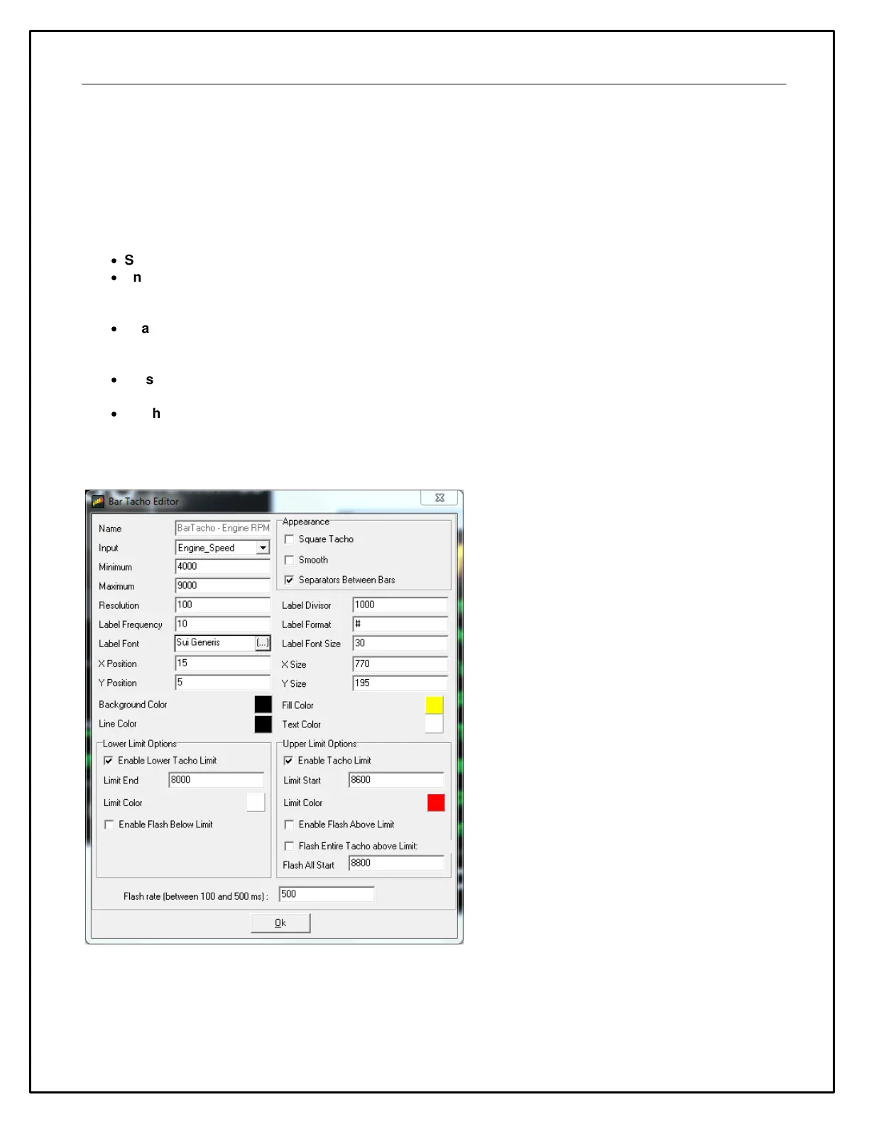 Enable Tacho Limit - Turns on the upper tacho limit. When enabled, the last part of the tacho (after to Limit
