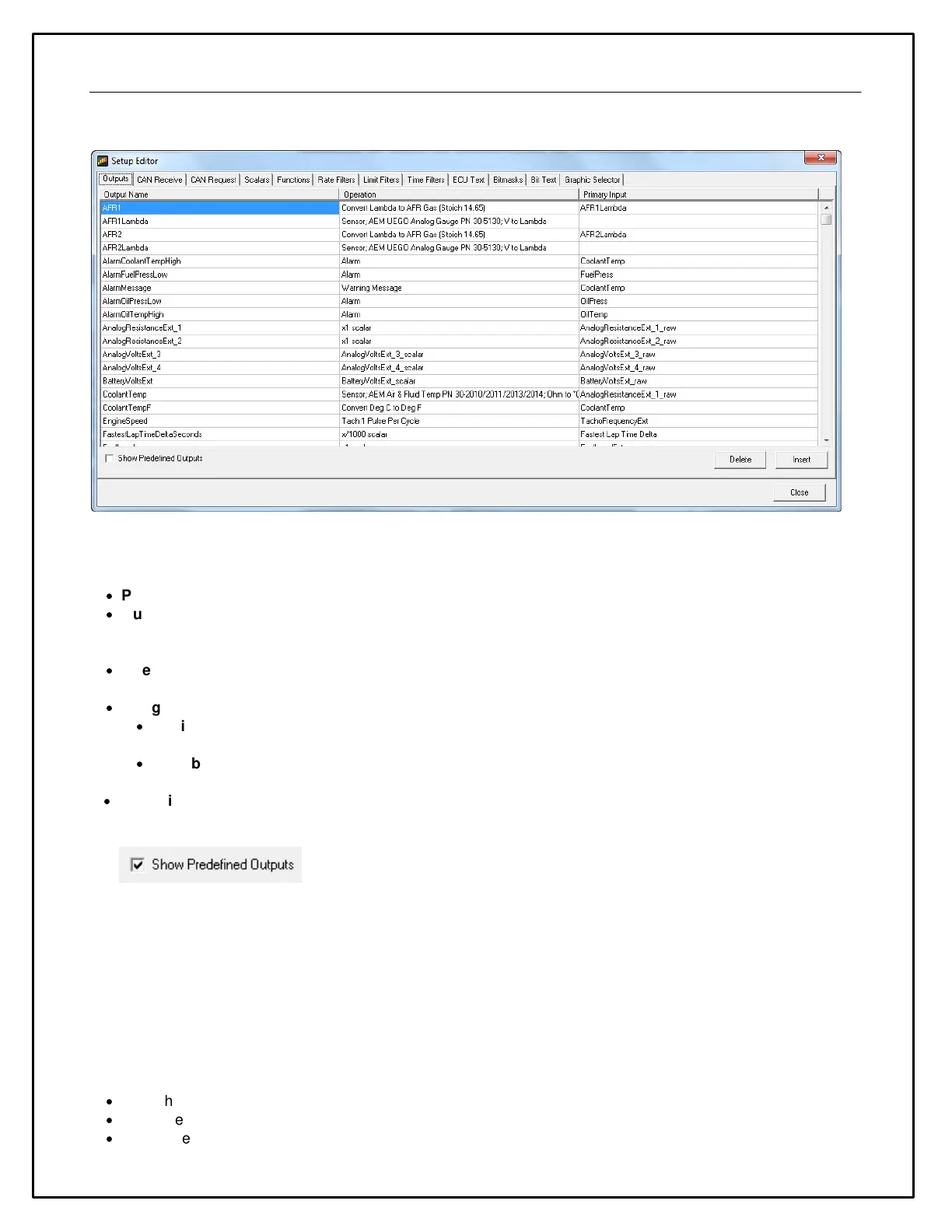 Click the Show Predefined Outputs box in the Display Editor to add all Predefined