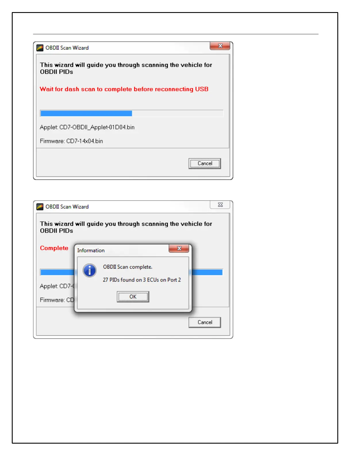 not loaded into dash after completing OBDII Scan Wizard there can be errors or missing data.