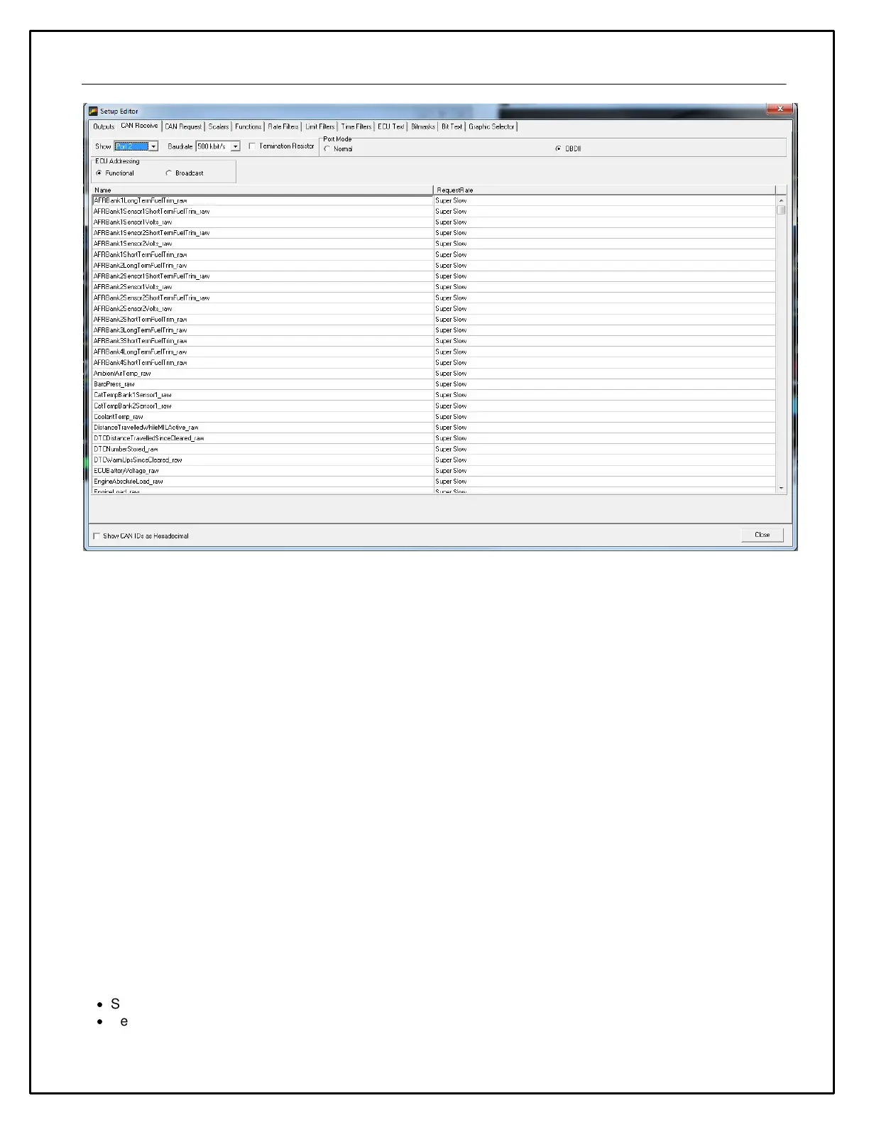 end of the process, go to Setup | Display… and select the CAN Receive tab. Select the Broadcast radio button as