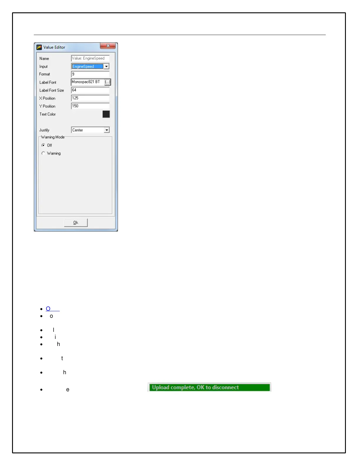 displayed as shown in the example below. Unplug the USB cable to reboot the dash with the new setup. Do