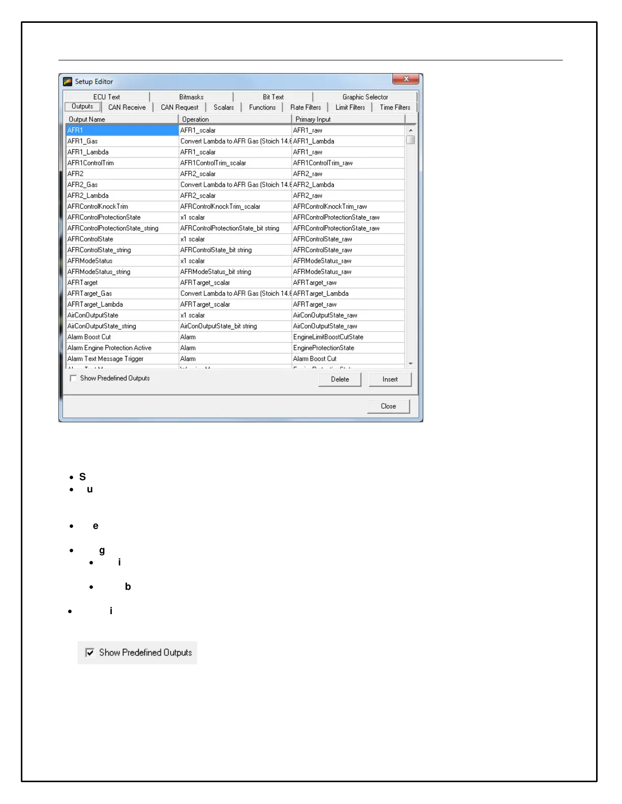 Click the Show Predefined Outputs box in the Display Editor to add all Predefined