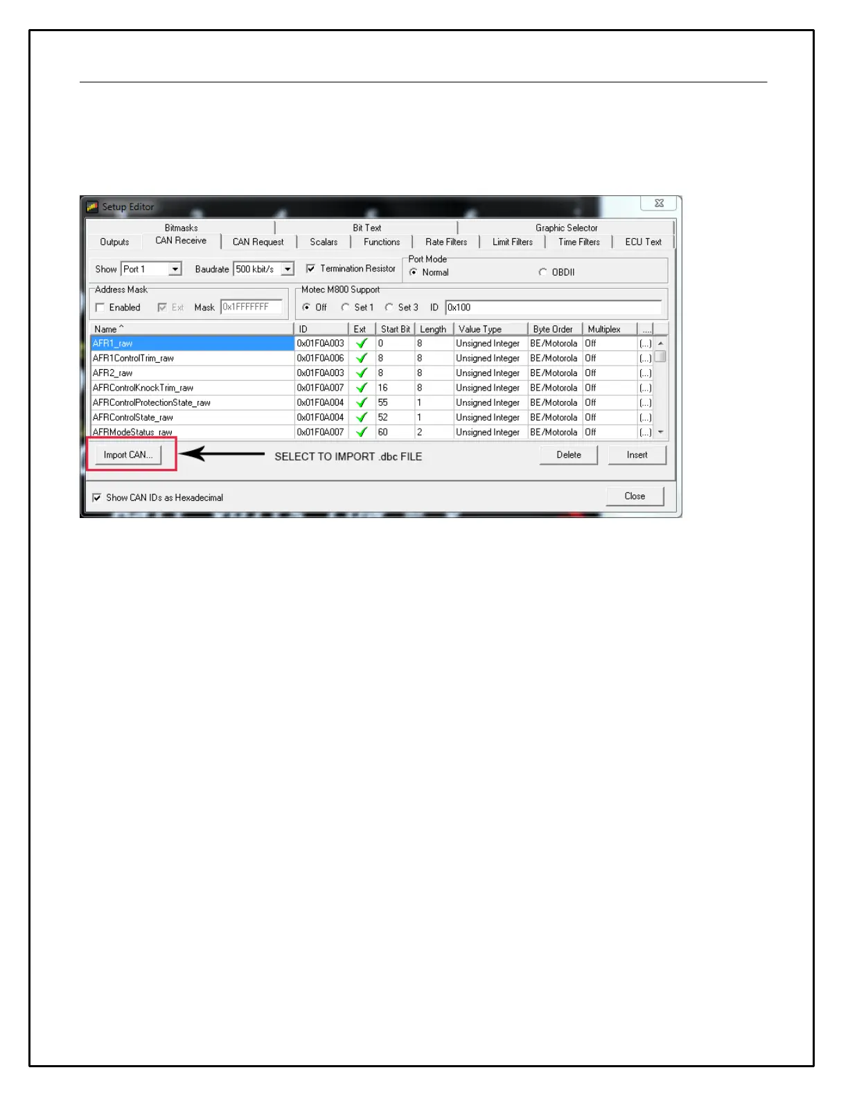 the system includes a robust CAN .dbc import feature that greatly simplifies the process.