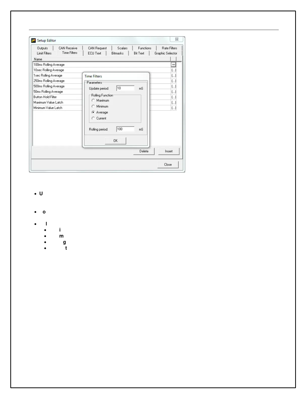 Minimum: The output is the minimum value occurring during the last (rolling period) milliseconds.