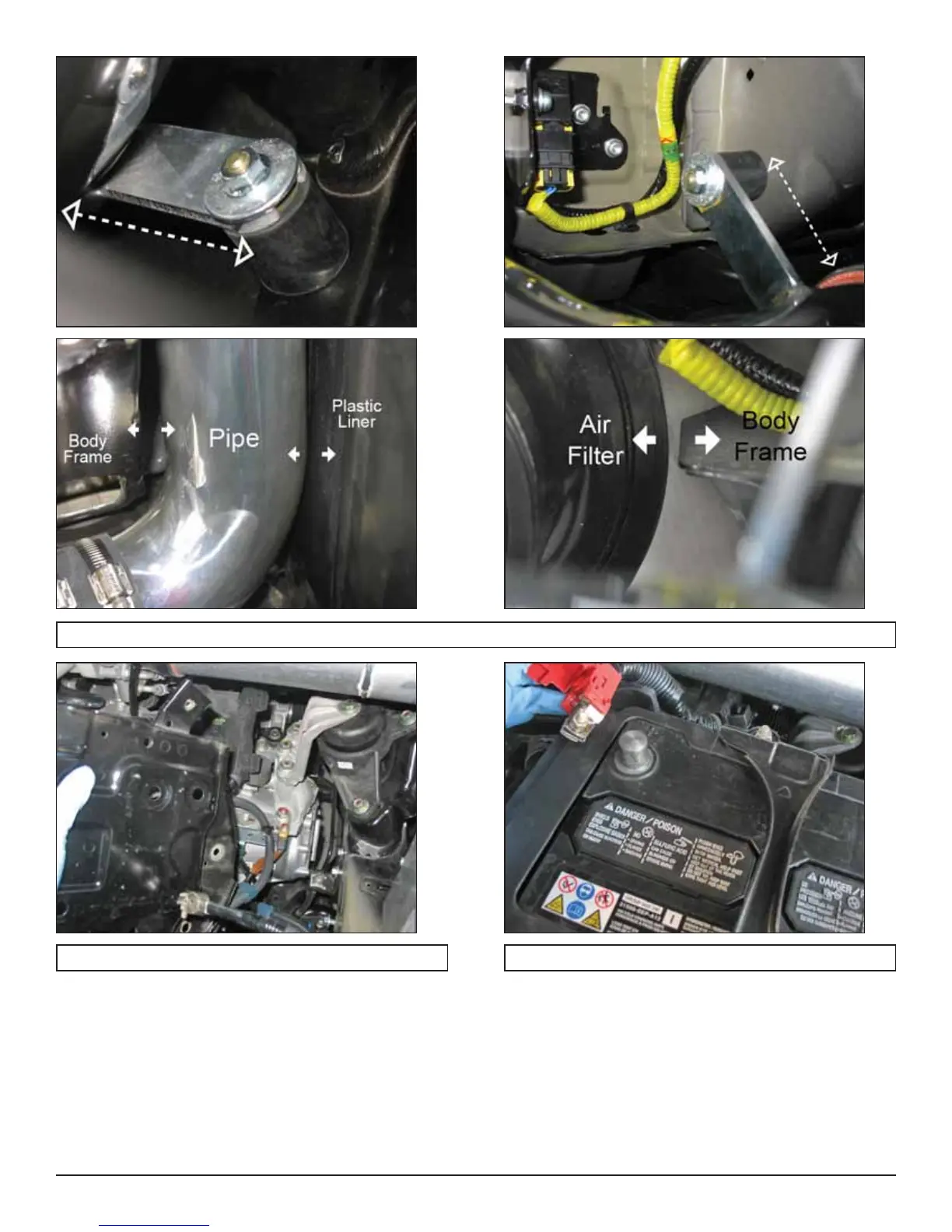 q. From previous steps 3i and 3p, adjust the brackets to allow clearance in the indicated areas shown in the photos.