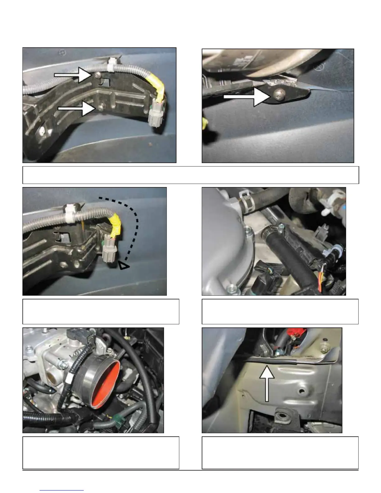 b. Locate the driver side fog light bracket. It is clipped onto the front bumper. Remove the three mounting screws shown
