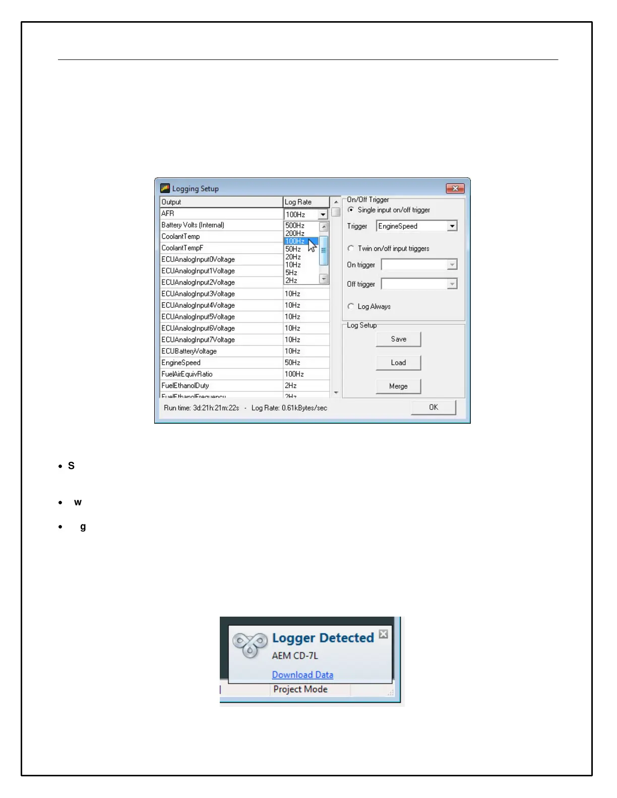 stopped. For example, if the channel EngineSpeed is used as the trigger, the logger will log anytime the engine is
