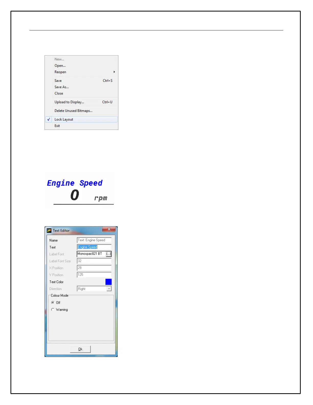 Double clicking on the Engine Speed text label in the example above will display the available editing menu.
