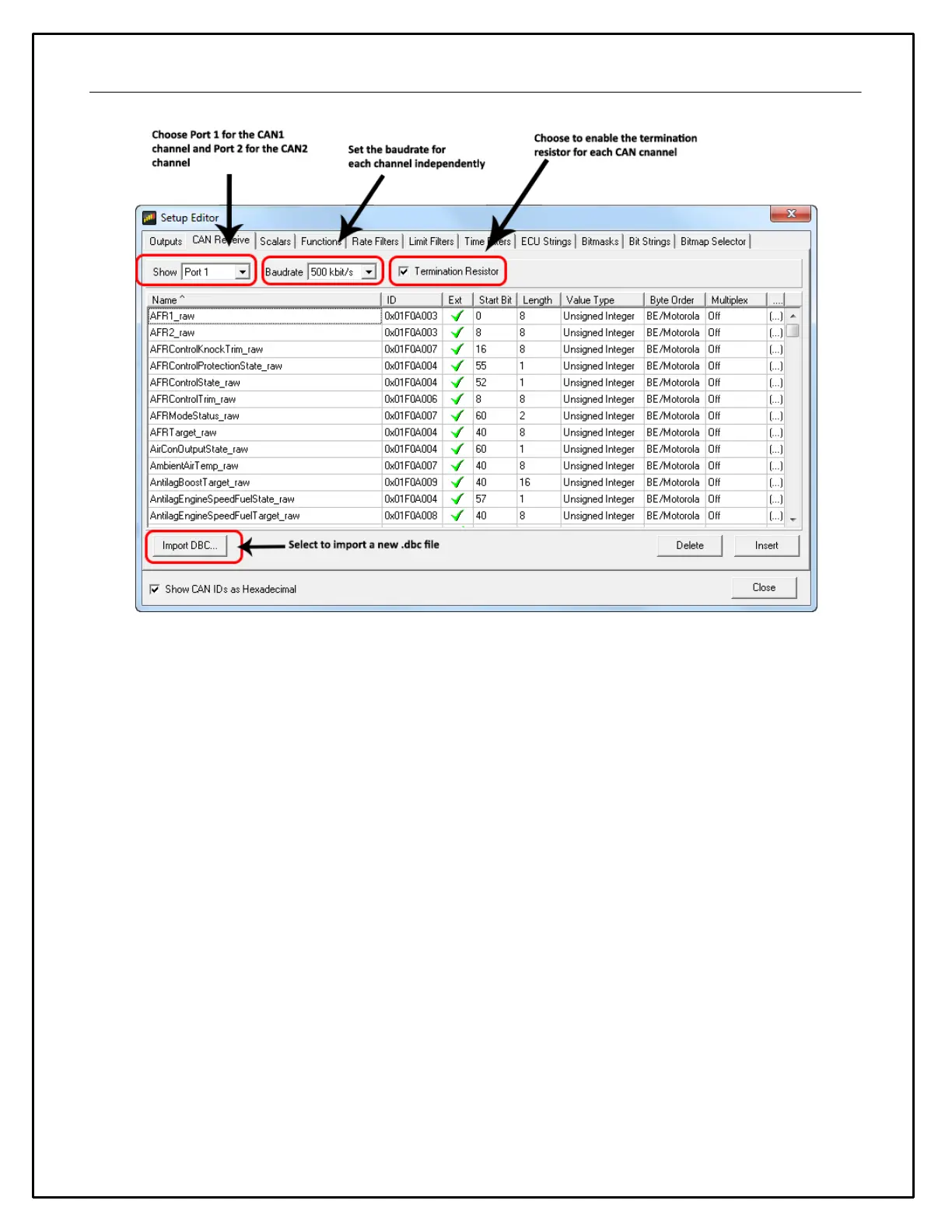 TheStart Bit” refers to the location of the LSB. The message contents and the byte/bit numbering can
