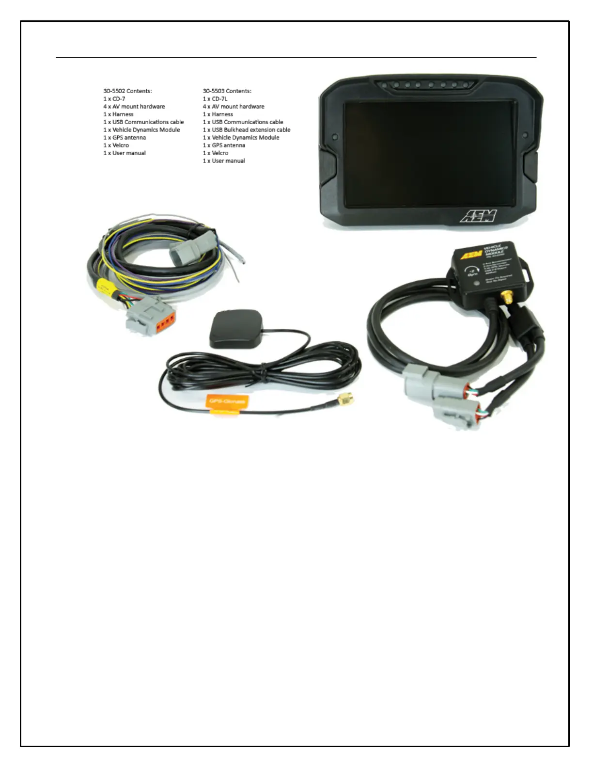 · Log data downloaded and viewed with AEMdata via USB port with sealed bulkhead extension cable (CD-7L