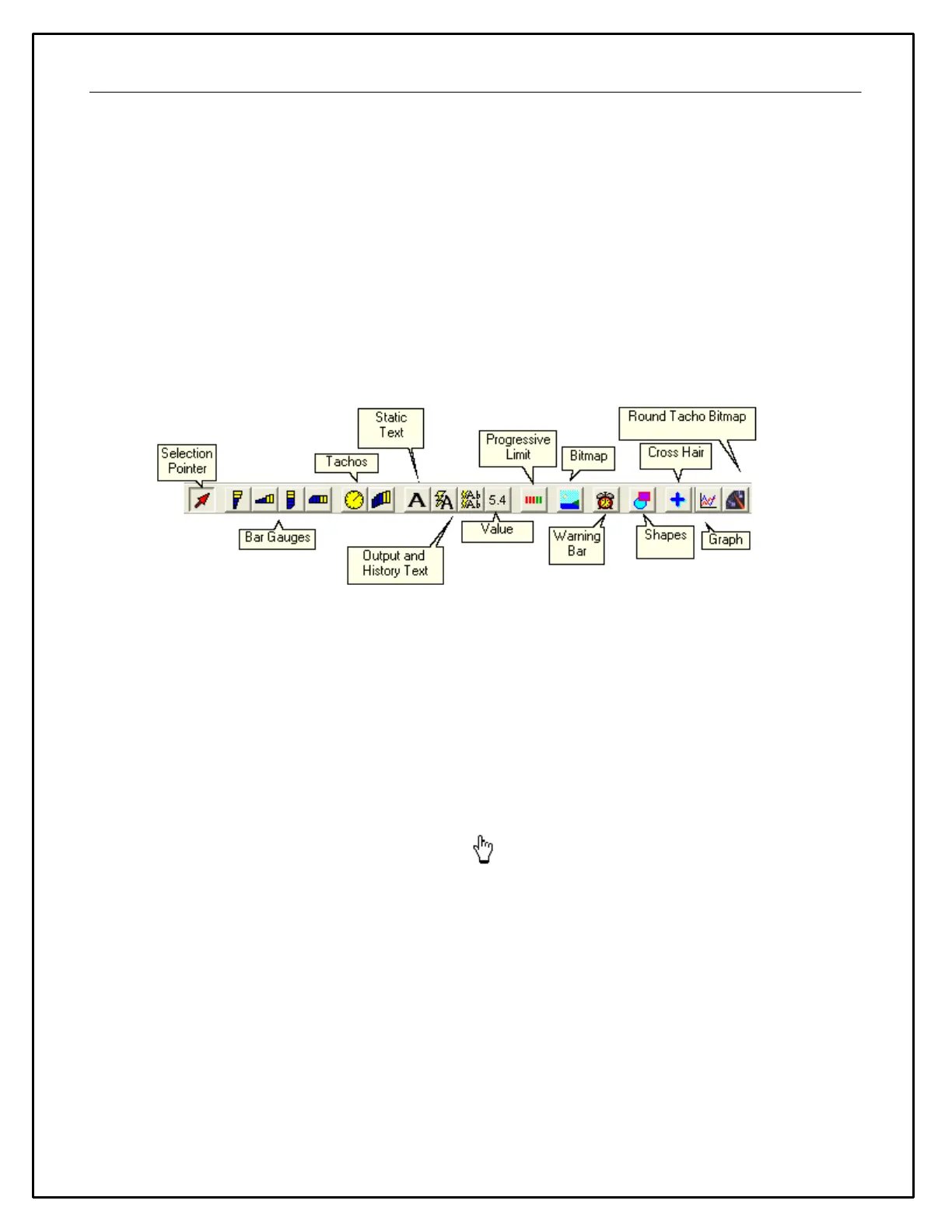 · Click on the area of the screen the gauge is to be added to and whilst holding the mouse button down drag