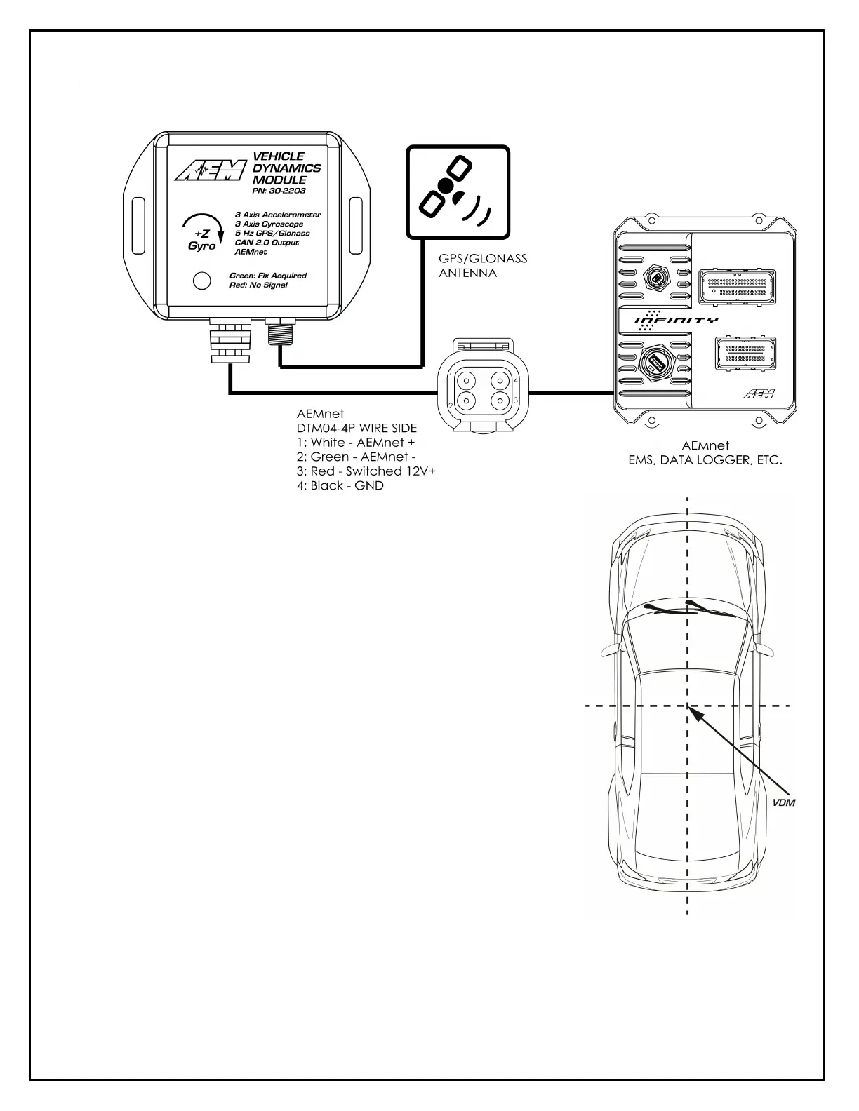 The VDM is equipped with an AEMnet connector (power, ground, and CAN)