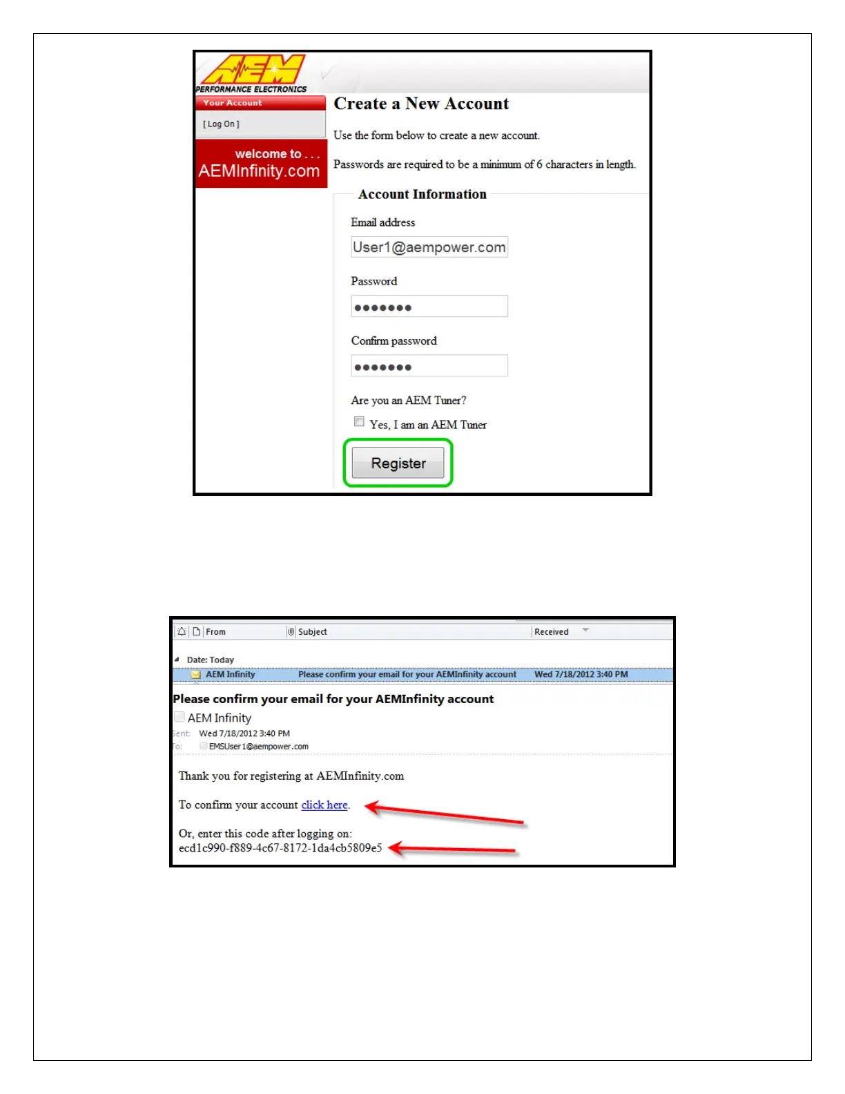 AEM INFINITY ECU - Account Confirmation Process; Email Confirmation Steps