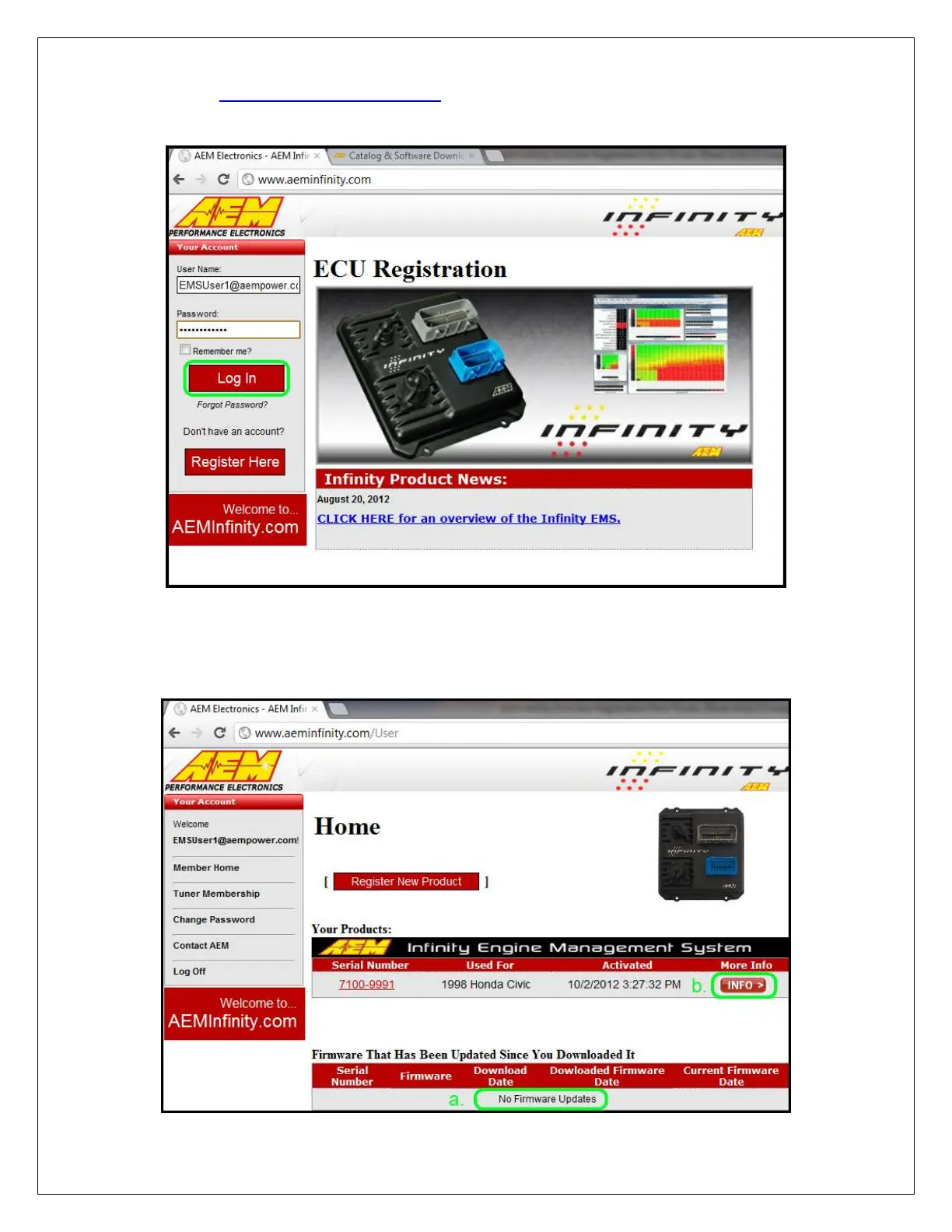 1) Go to http://www.aeminfinity.com