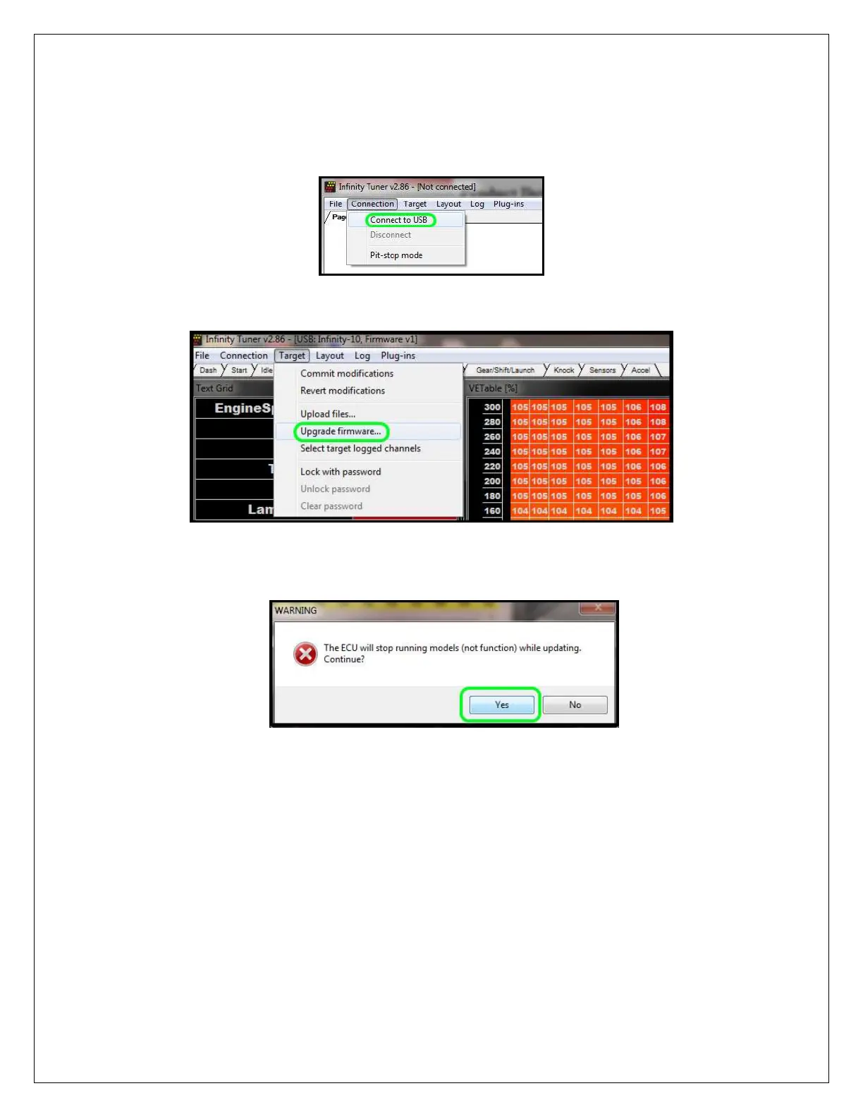 b. Open InfinityTuner, If the wiring harness is installed correctly and ignition