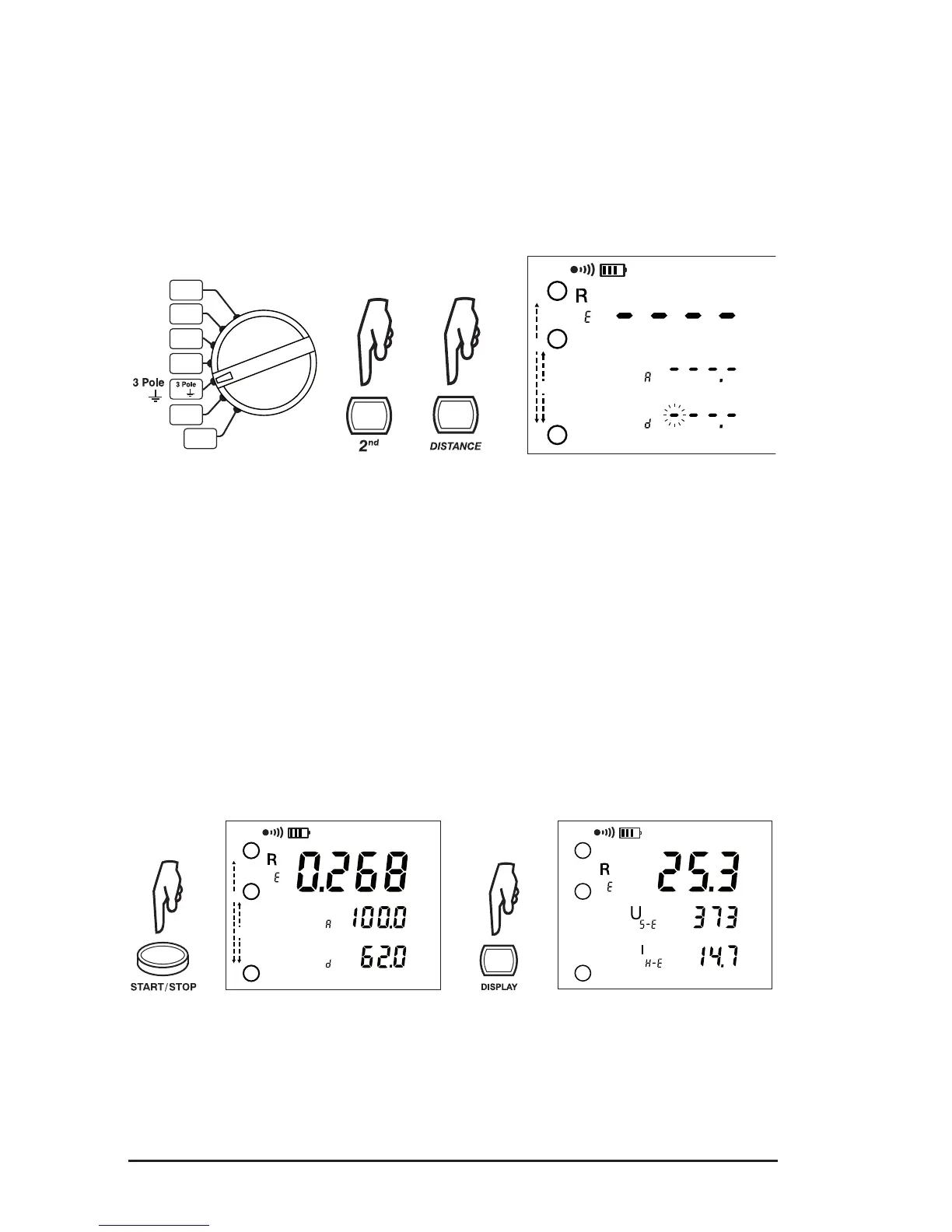 connect the earth strap from the rod under test, then connect terminal E (green) to