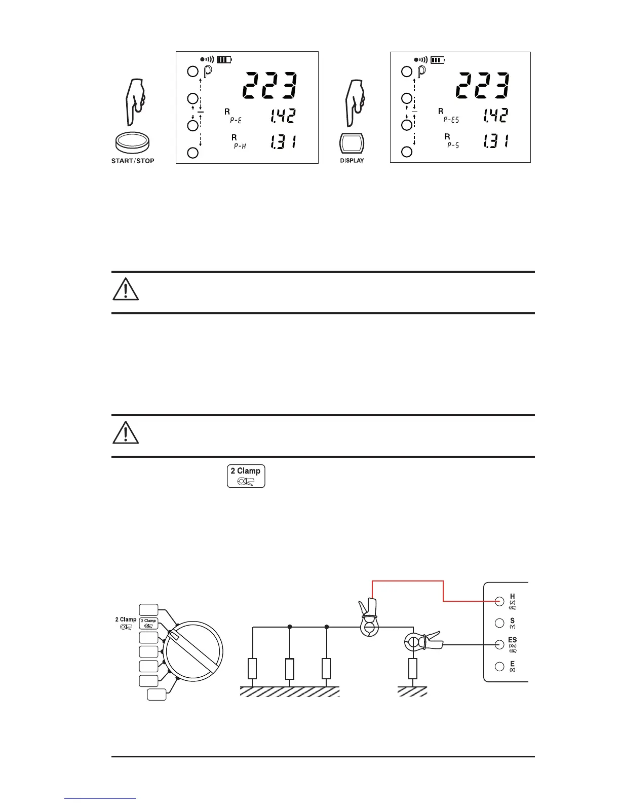 clamp connected to terminal ES (Xv). The device then calculates loop resistance