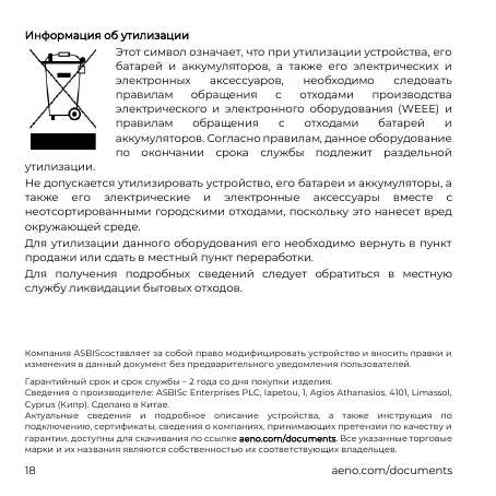 гарантии, доступны для скачивания по ссылке aeno.com/documents. Все указанные торговые