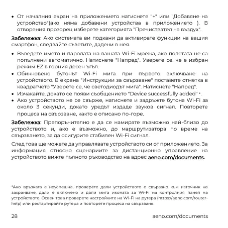 устройството вижте пълното ръководство на адрес aeno.com/documents.