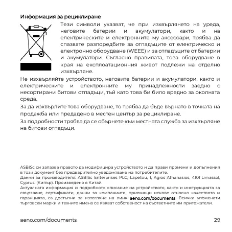 гаранцията, са достъпни за изтегляне на линк aeno.com/documents. Всички упоменати