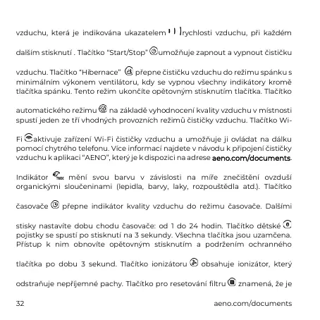 vzduchu. Tlačítko “Hibernace” přepne čističku vzduchu do režimu spánku s