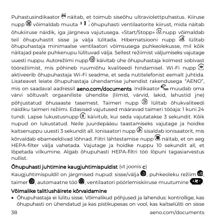 Lisateavet leiate õhupuhastaja ühendamise juhendist rakendusega “AENO”,