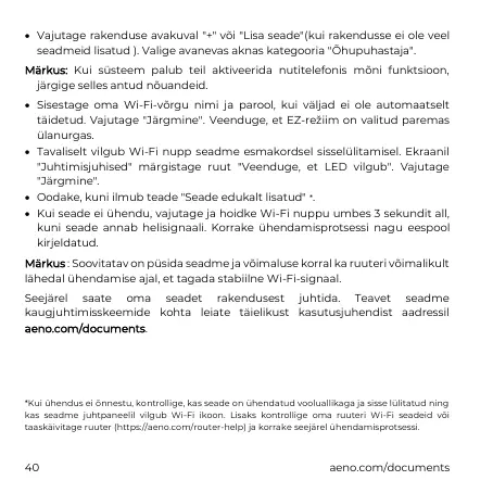 Märkus : Soovitatav on püsida seadme ja võimaluse korral ka ruuteri võimalikult