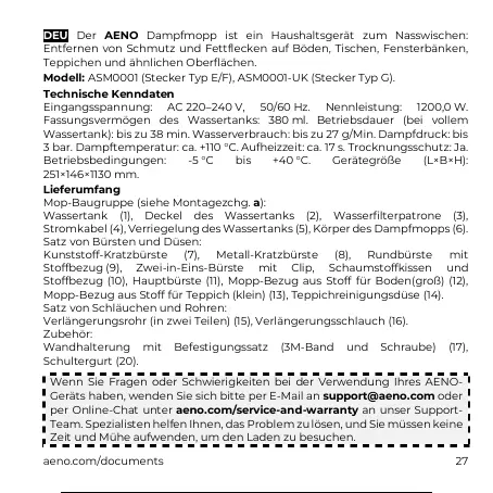 Geräts haben, wenden Sie sich bitte per E-Mail an support@aeno.com oder