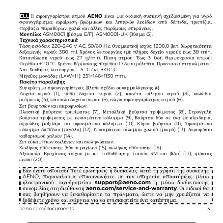 συνομιλίας στη διεύθυνση aeno.com/service-and-warranty. Οι ειδικοί θα