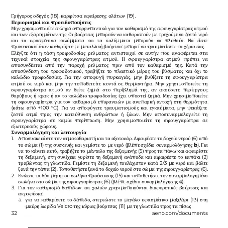 Γρήγορος οδηγός (18), καρφίτσα αφαίρεσης αλάτων (19).