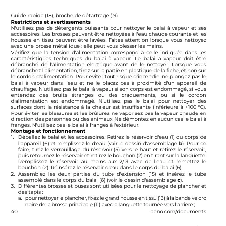 caractéristiques techniques du balai à vapeur. Le balai à vapeur doit être
