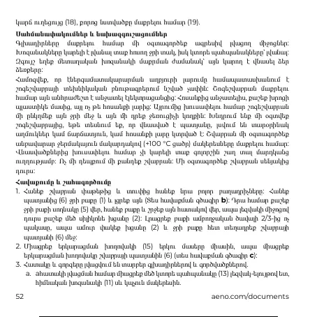 կարճ ուղեցույց (18), քորոց նստվածքը մաքրելու համար (19).