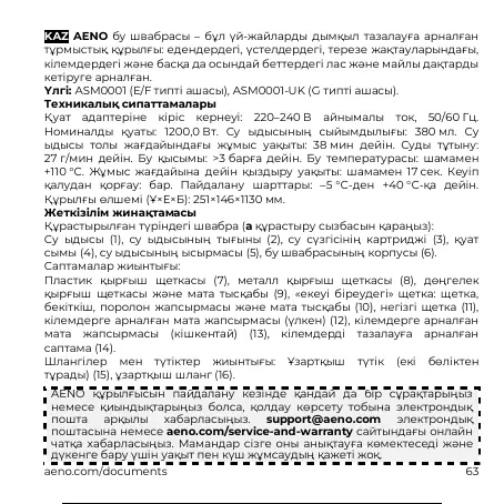 поштасына немесе aeno.com/service-and-warranty сайтындағы онлайн