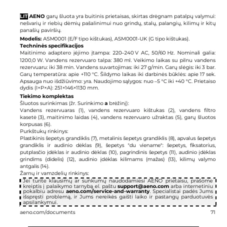 pokalbiu adresu aeno.com/service-and-warranty. Specialistai padės Jums