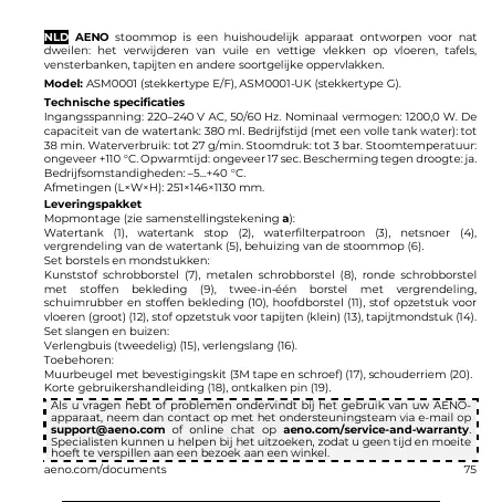 Als u vragen hebt of problemen ondervindt bij het gebruik van uw AENO