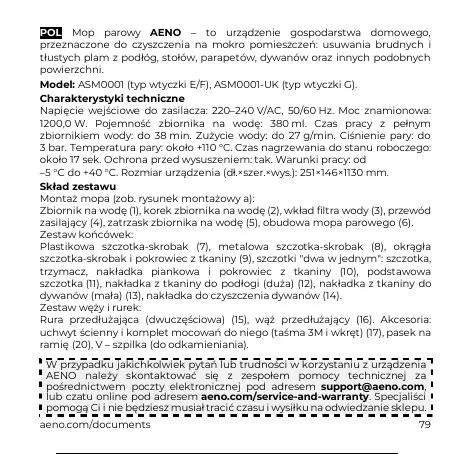 lub czatu online pod adresem aeno.com/service-and-warranty. Specjaliści